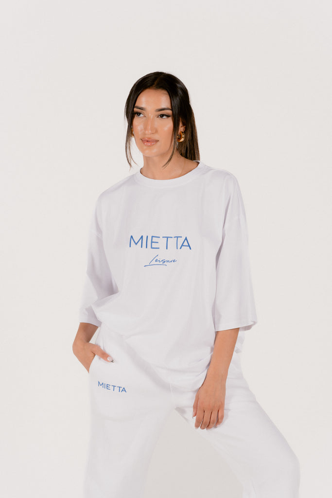 Classic white over sized t shirt. Great to be worn in many ways and the colour suits all matching pieces.